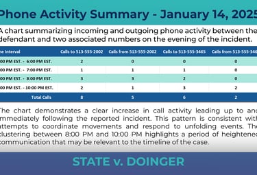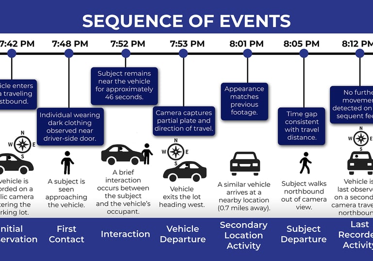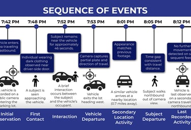 Courtroom-ready timelines that visually communicate key events, time gaps, and movements with accuracy and clarity.