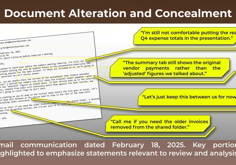 Highlights key portions of documents to clearly emphasize important statements for courtroom or investigative analysis.